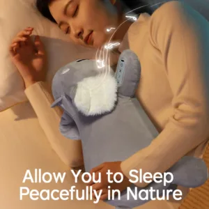 Featuring biometric breathing simulation, the doll gently rises and falls like real, rhythmic breathing — creating a calming effect that helps you relax and fall asleep faster. Combined with 32 built-in white noise tracks such as ocean waves, rainfall, forest breeze, and soft lullabies, it effectively masks external noise and promotes deep, uninterrupted rest.